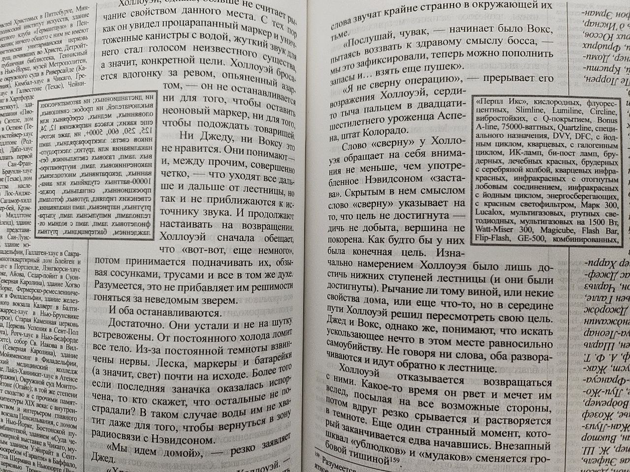 Хотя я покупала книгу, упакованную в пленку, на самом страшном месте она была прожжена окурком, что меня, мягко говоря, вывело из себя, и удивило, когда я узнала, что в других экземплярах такого не наблюдалось. Как будто сама книга - как тот дом - проявила свою аномалию именно в моём экземпляре, оставив шрам-автограф. Это лишь усилило ощущение, что “Дом листьев” - не статичный объект, а живой, почти мистический артефакт, опыт взаимодействия с которым уникален для каждого